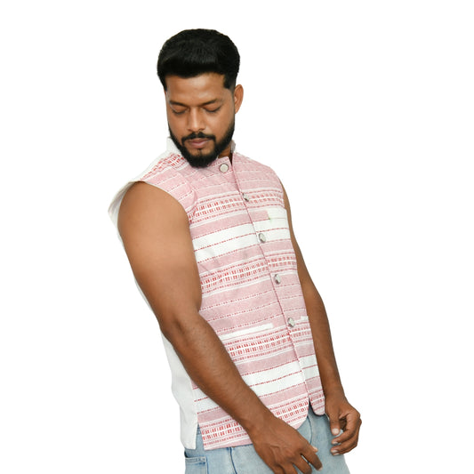 Johar Tribal Mart Biru AdivasiTribal Blazer Khadi Cotton White & Red