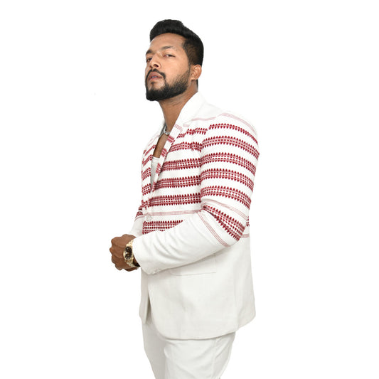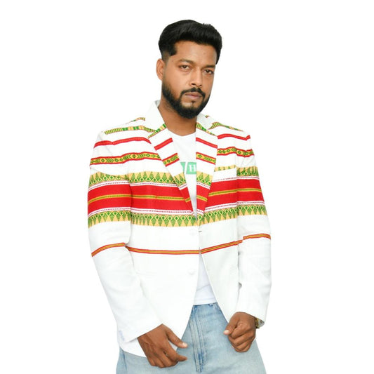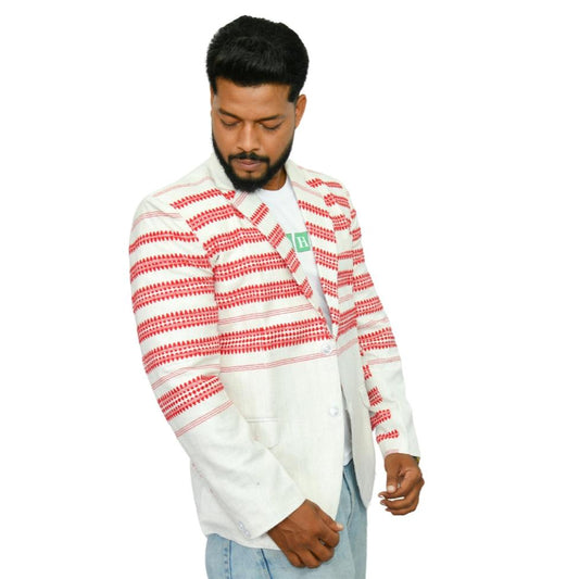 Johar Tribal Mart Mens Traditional Cotton Blazer Multi Line White & Red