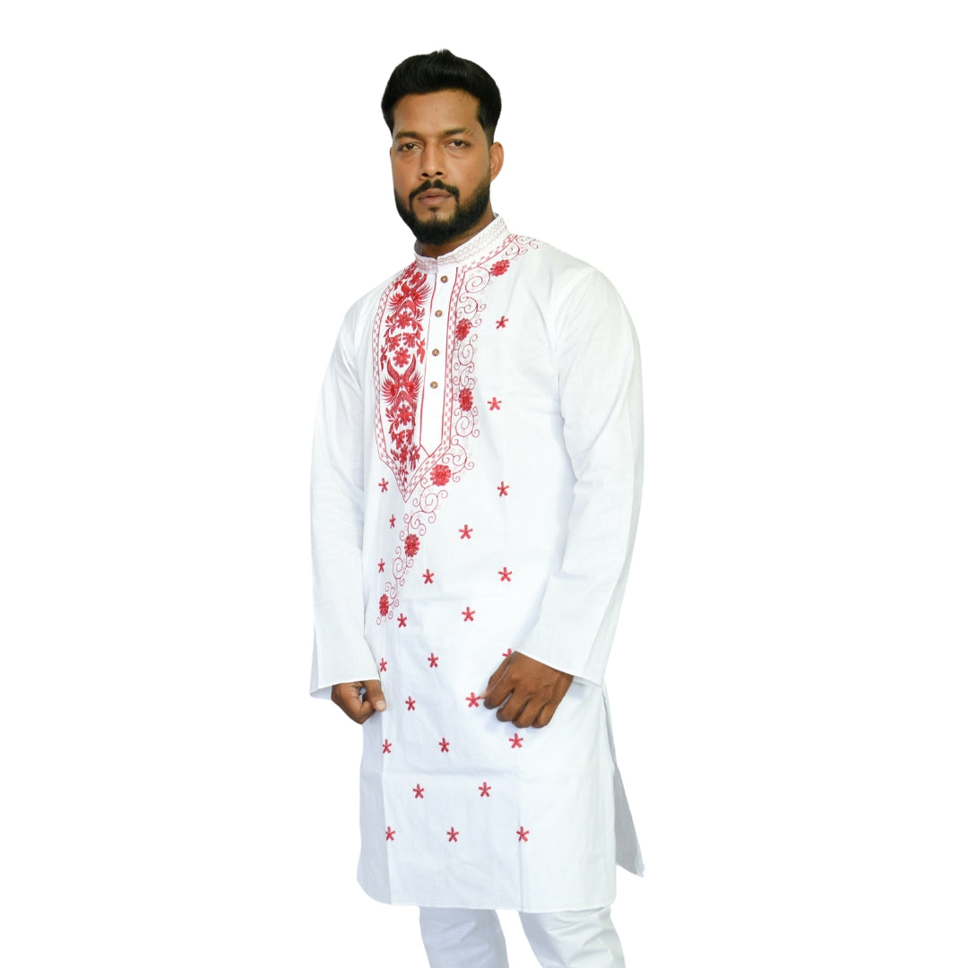 Johar Tribal Mart Mens Traditional Embroidery Kurta Pajama White & Red Traditional