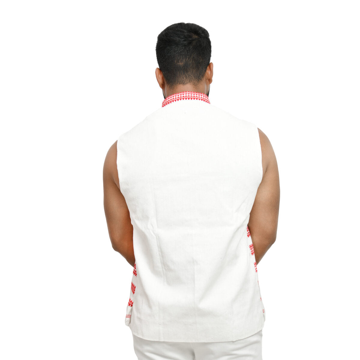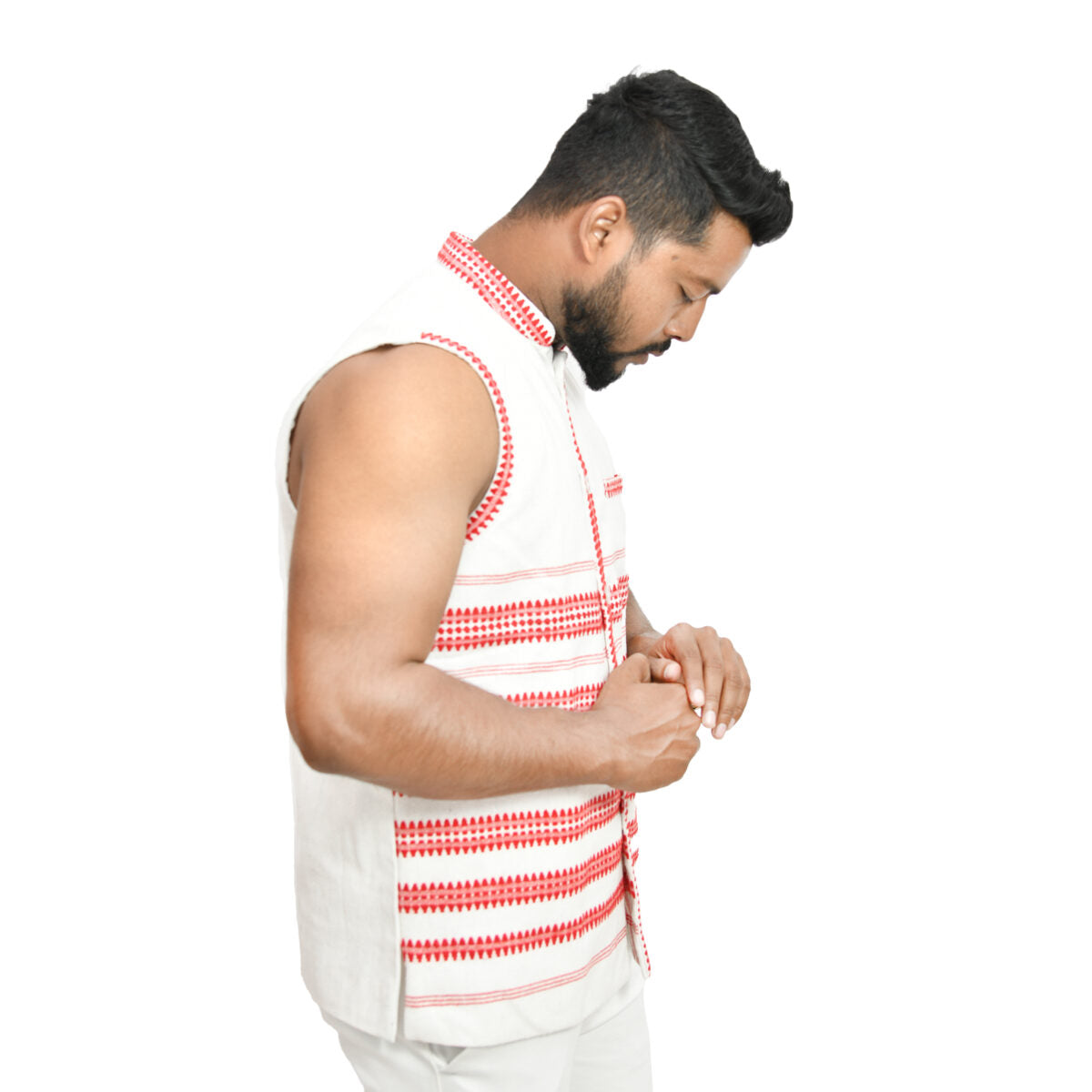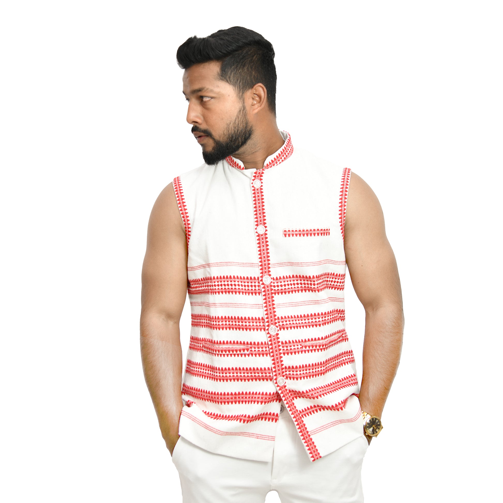 Kukhena Mix Border Tribal Khadi West Coat Red & White